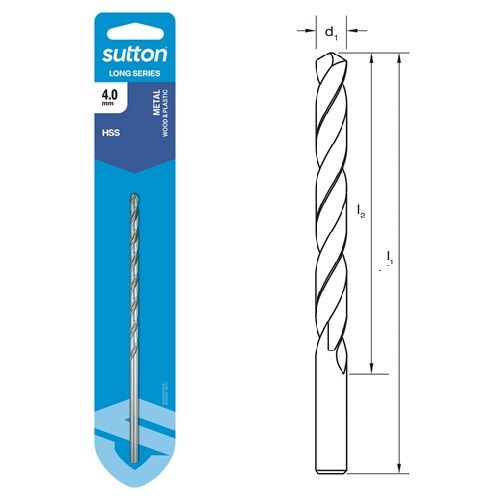 Sutton Tools Long Series Drills offer longer flute & overall length than standard drill bits. Ideal for drilling deeper holes.